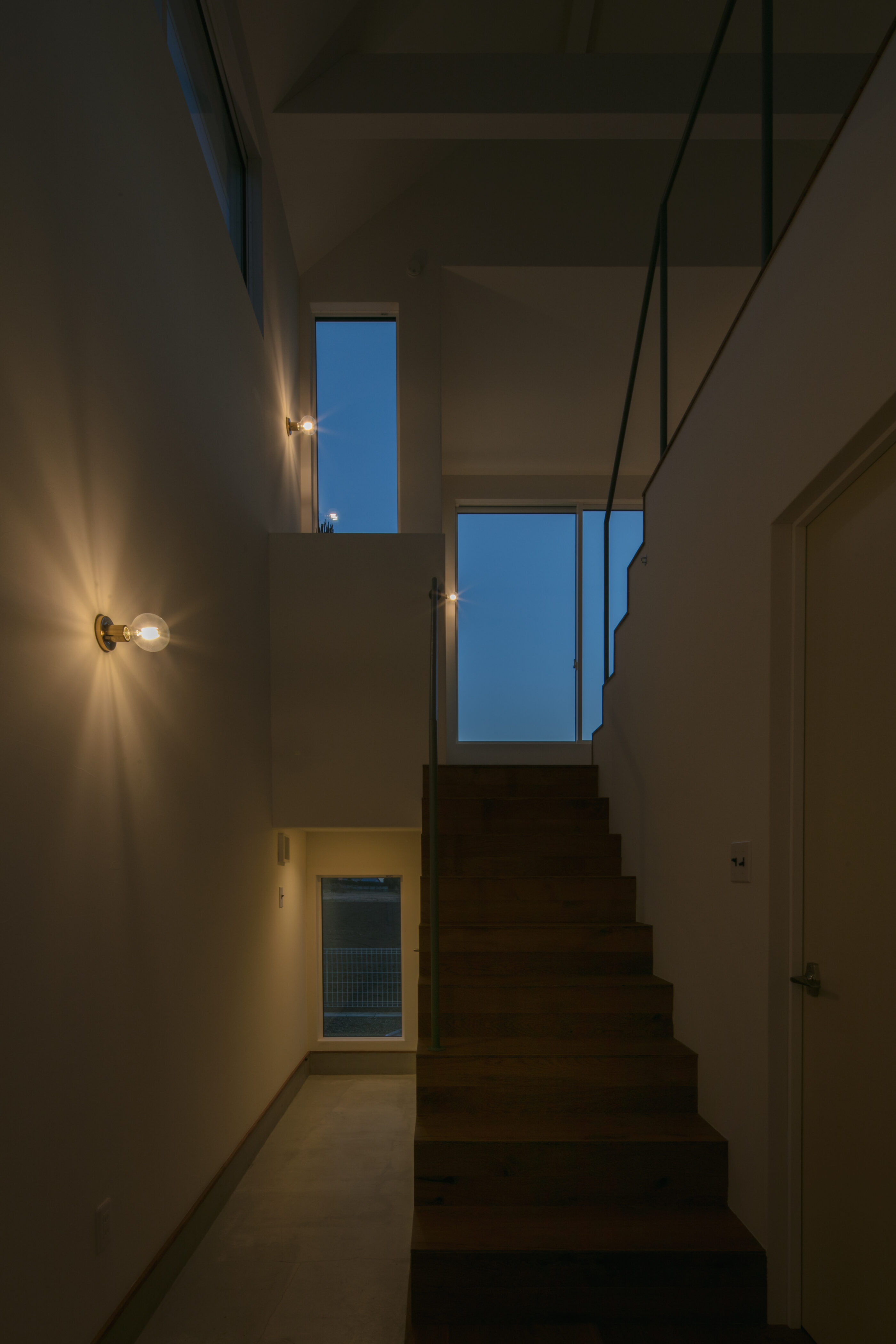 切り取られた空を愉しむ天窓と、小ぶりな照明が日々の営みを優しく見守る。