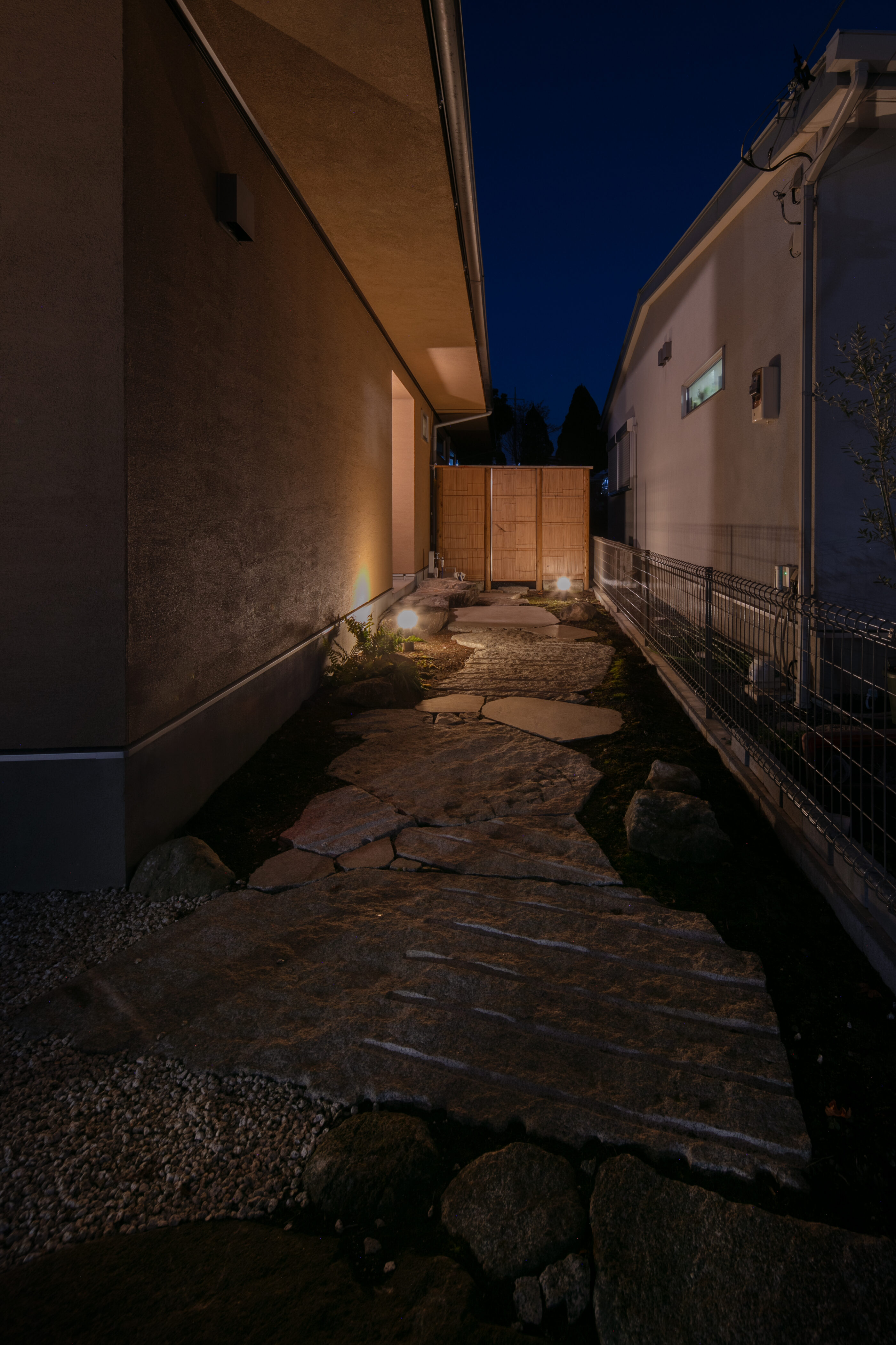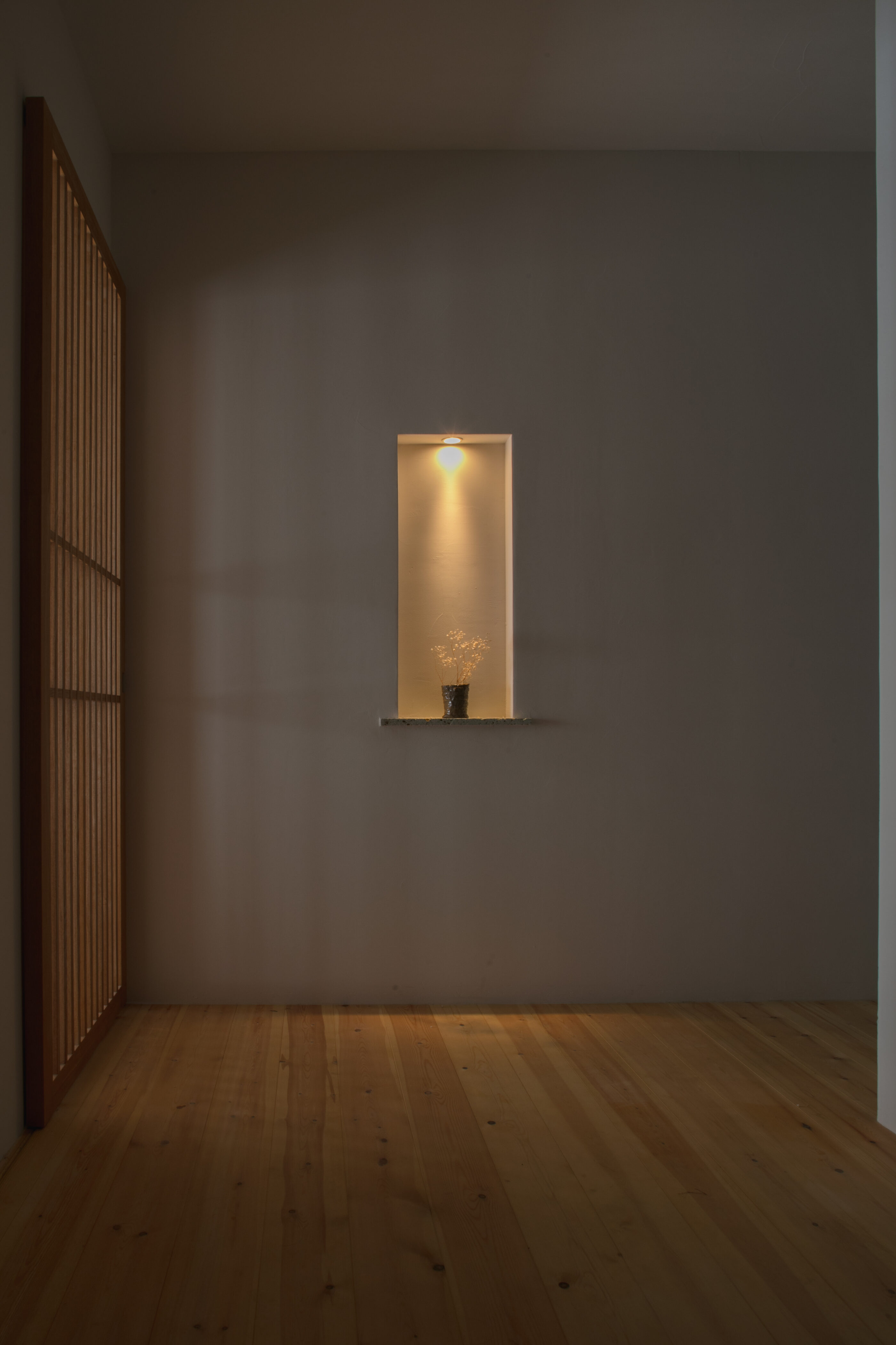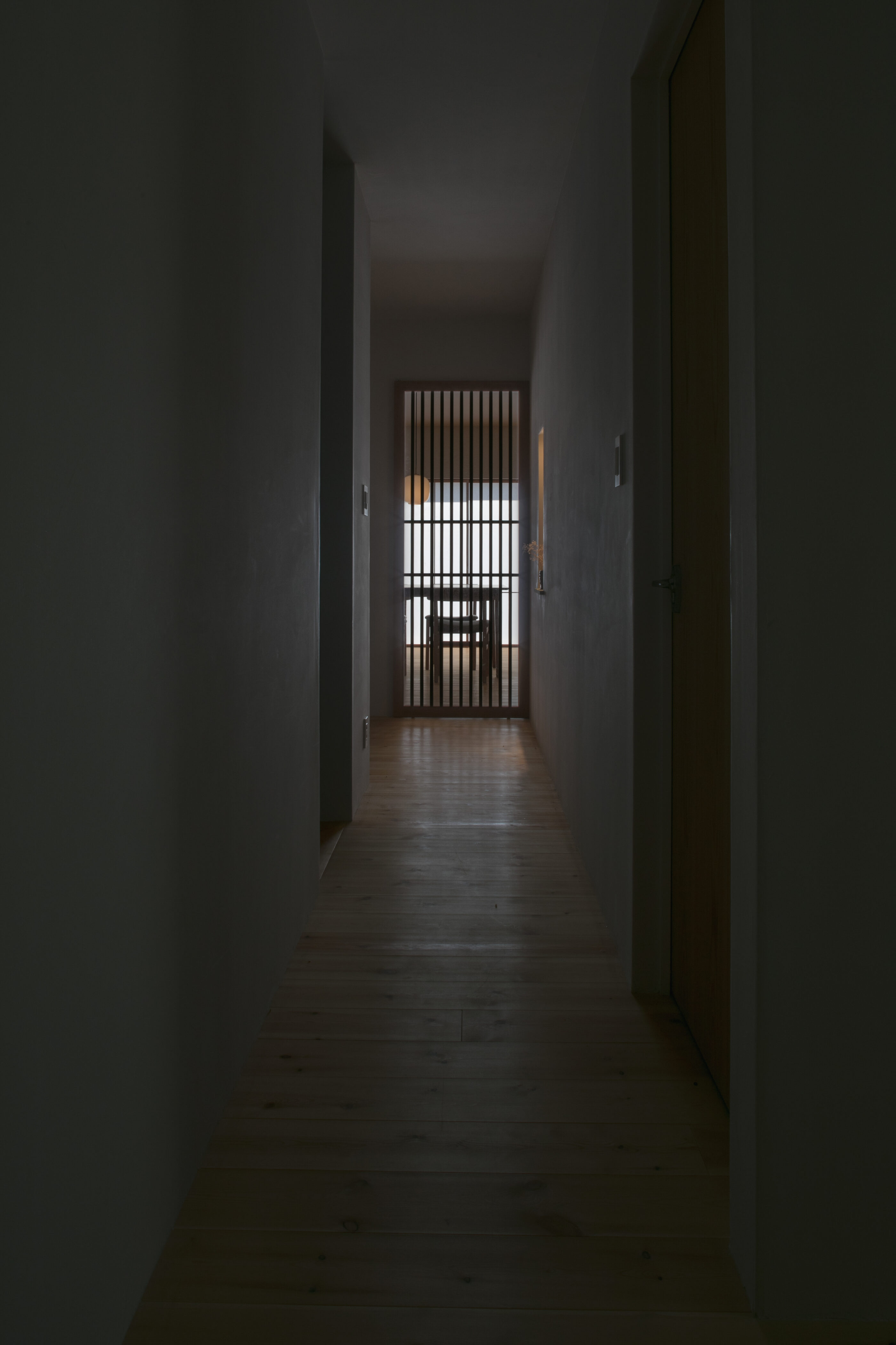 自然に囲まれた穏やかな土地に計画した住まい。周辺環境との調和を大切にしながら設けた大きな窓からは、瑞々しい緑や、季節ごとに表情を変える景色が室内へと穏やかに入り込みます。季節の移ろいを日常の中で感じながら、住まうほどに豊かさが増していく空間を目指しました。