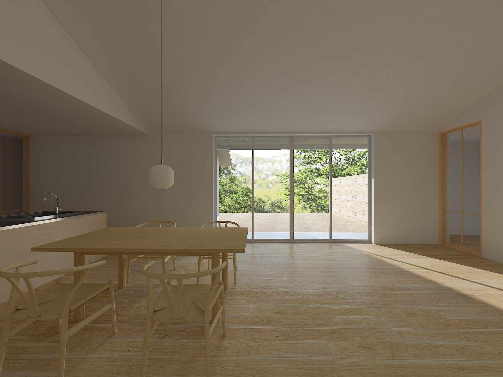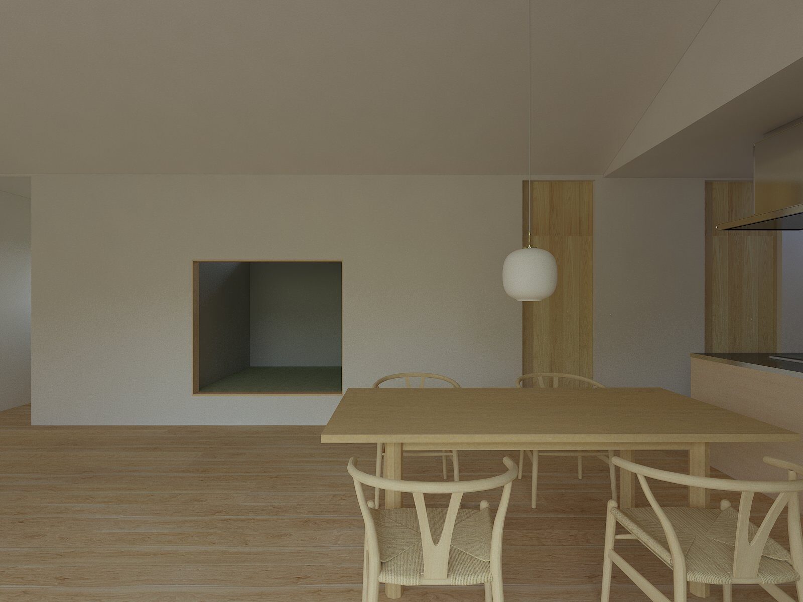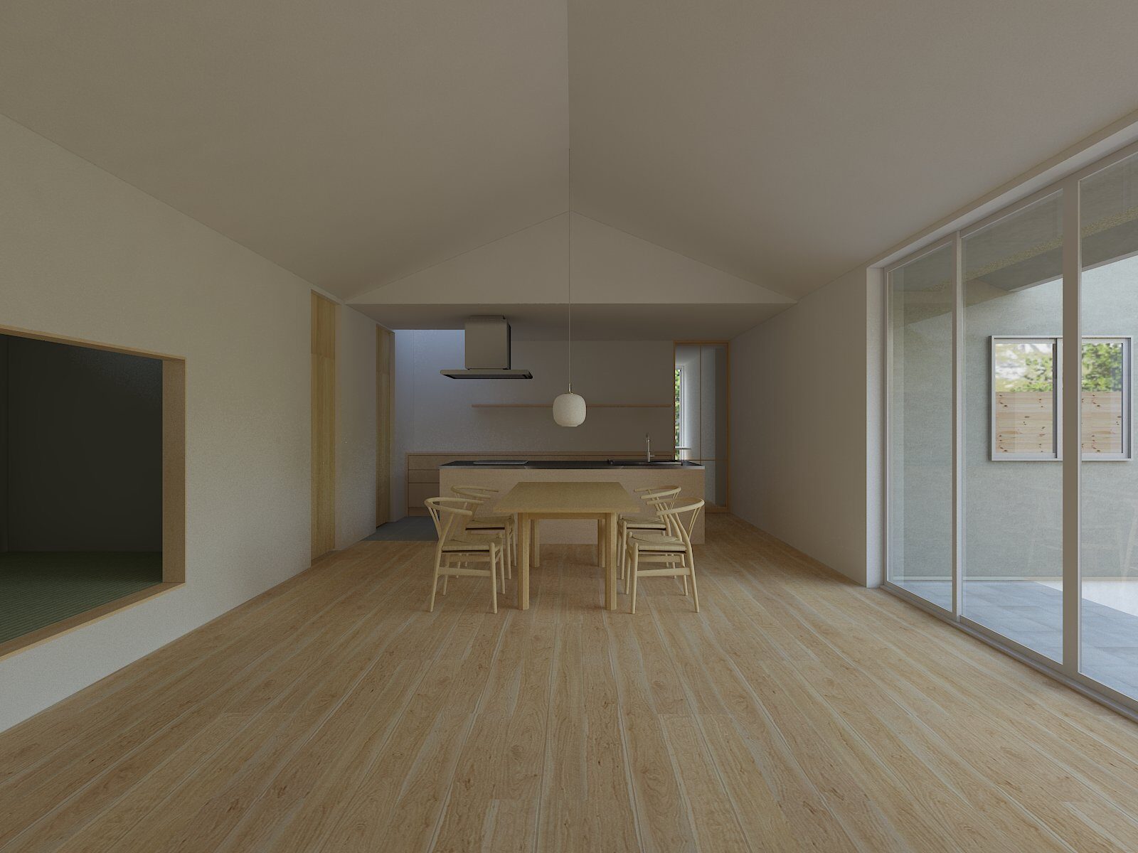 外へと開かず、内にひらく。光はやわらかく巡り、空間の奥へと静かに広がっていく。平屋ならではの連なりが、暮らしをやさしく包み込みます。